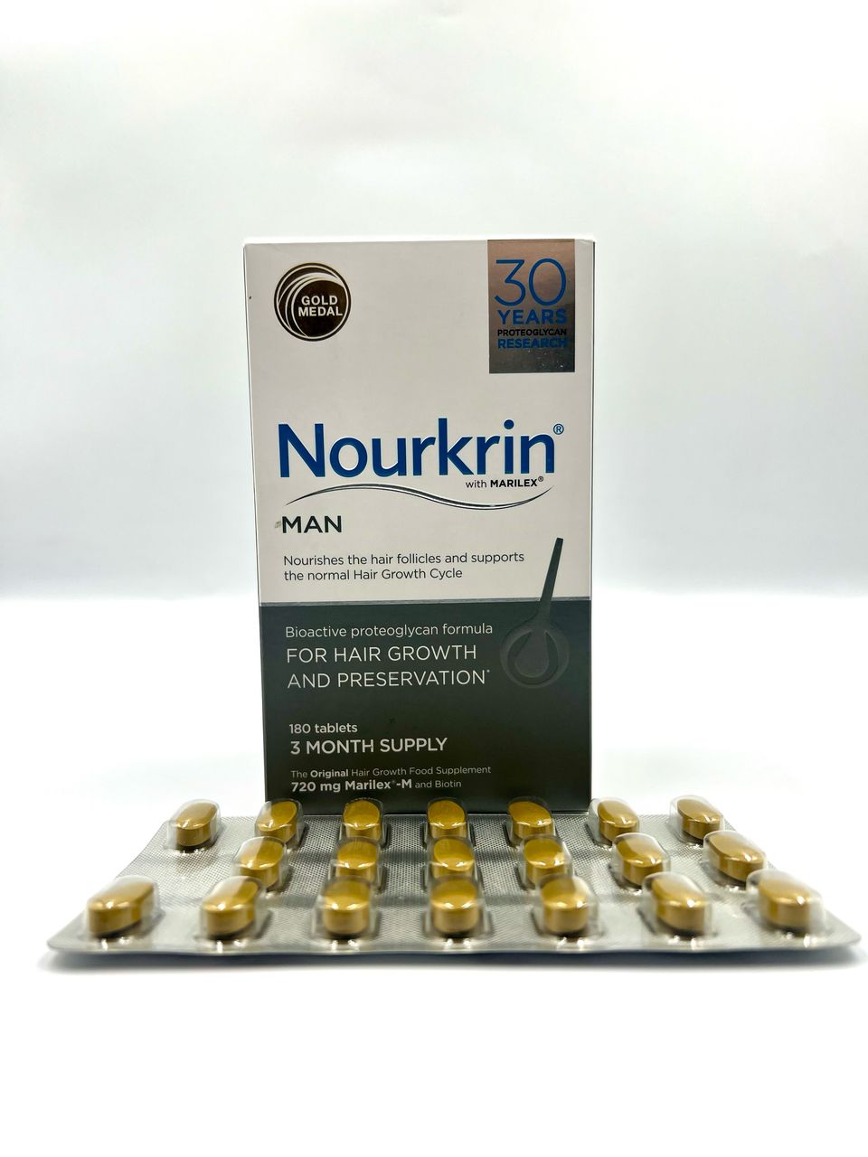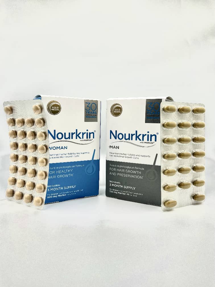 •	Nourkrin Man: برای مردان طراحی شده و به کاهش اثرات طاسی الگوی مردانه و تقویت رشد مو کمک میکند.